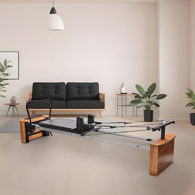 - Studio-Quality Design: Features a solid oak wood base, elevated steel frame, wide padded platform, and smooth aluminum rails for a professional Pilates experience at home