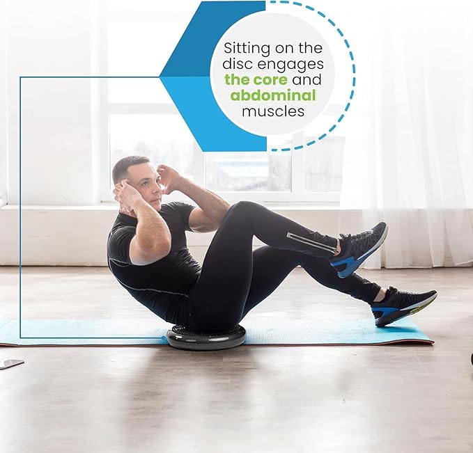 - Balance disc promotes core stability, strengthens muscle tone, improves balance and body posture.