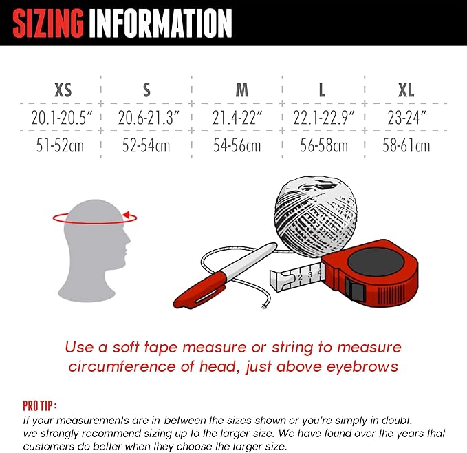 - Find Your Perfect Fit: X-Small fits 20.1–20.5 in (51–52 cm), Small fits 20.6–21.3 in (52–54 cm), Medium fits 21.4–22 in (54–56 cm), Large fits 22.1–22.9 in (56–58cm), X-Large fits 23–24 in (58–61 cm)