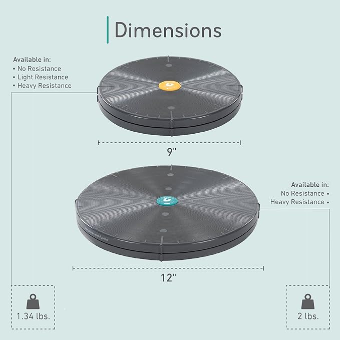 - MULTIPLE SIZE OPTIONS: The Precision Rotator Disc has a weight tolerance of 500 lbs. and is available in 12- and 9-inch sizes (sold separately). The large disc is great for feet, making it perfect for standing and upright twisting exercises.