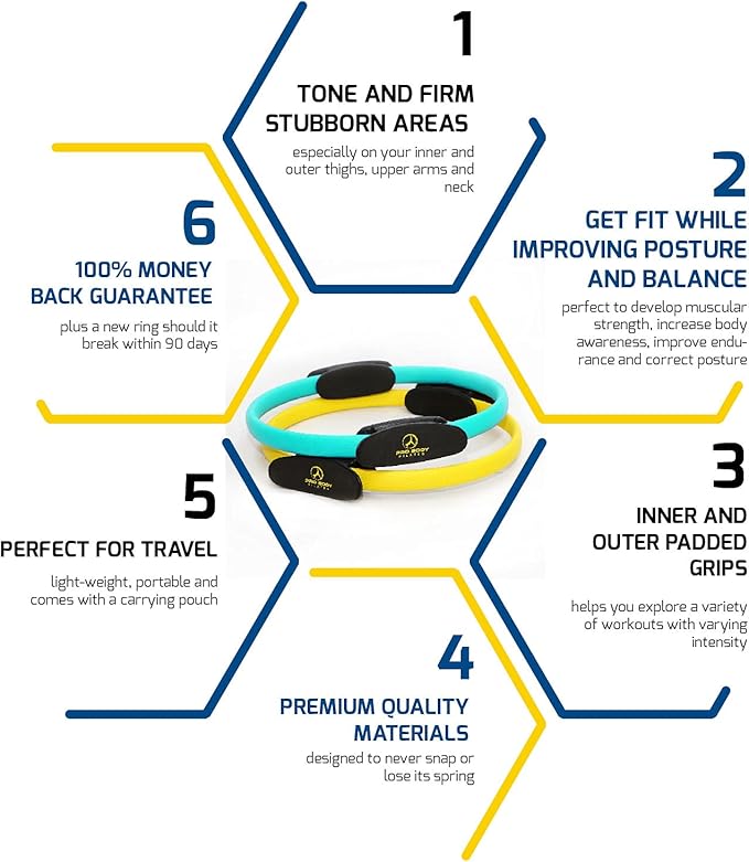 • GET FIT AND STRONG: Essential to your Pilates equipment for home workouts. This Pilates ring for women will improve your muscle tone and fitness when you practice regularly, at home, office or when traveling.