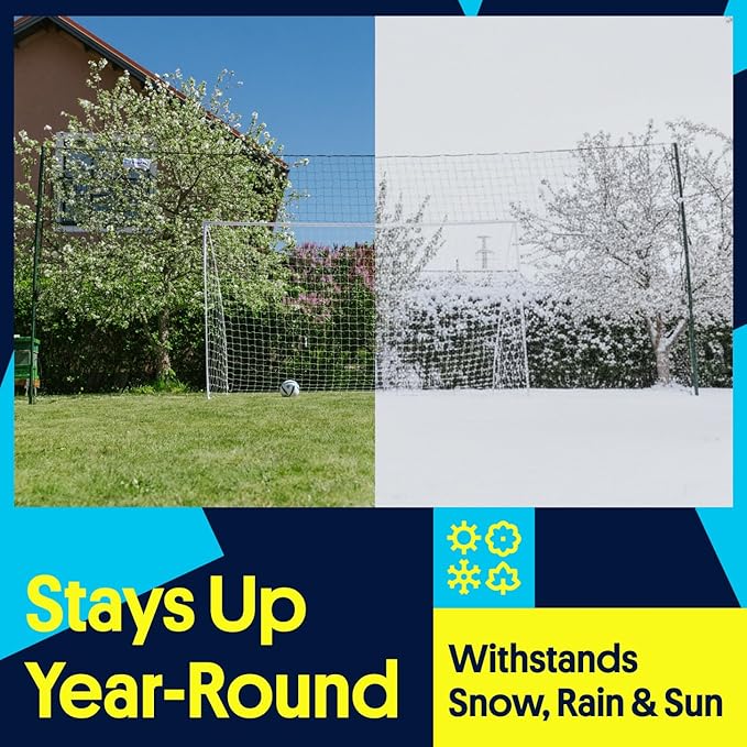 - Backyard-Friendly Design: Easy to set up with no digging required, poles spike into natural grass and anchor securely with guy ropes. Open Goaaal is only compatible with grass surfaces (not turf, sand, or concrete), be sure to check your setup before ordering. Built from high-quality, weather-resistant materials, this durable soccer goal is designed to withstand rain, snow, and wind. Protect your yard, your neighbors, and your windows, while giving kids the freedom to play hard