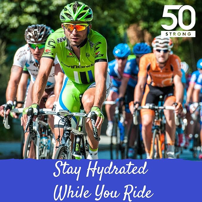 Bike Water Bottle Holder & Bottle Combo – 2-Pack 22 oz Sports Squeeze Bottles with Pull Top Cap & Easy-Install Bike Cage – Made in USA – 50 Strong Brand