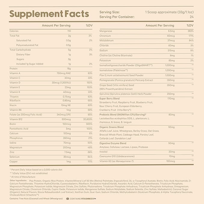 - Plant-Powered Nutrition: A unique blend of complete plant proteins, essential vitamins & minerals, and 50+ organic superfoods for a guilt-free, low-carb, complete nutrition shake that supports active & busy lifestyles with a boost in metabolism.