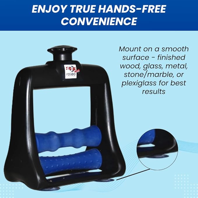 - If it feels too strong, wear a sweatshirt to cushion your arm. A long-sleeved T-shirt will protect heavy arm hair from pulling. If you don't want to hold it with your other hand, install provided suction cups. Please make sure to pull them hard and snug toward the side of the Roleo. Works on clean glass, plexiglass, metal, finished wood, marble, or any smooth surface. To uninstall, pull Roleo off and then remove cups from surface.
