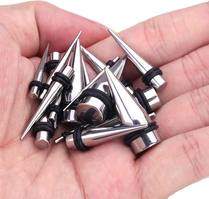 - VERIFIED SIZES: Tunnels, Tapers (O-Rings Included): 14G (1.6mm), 12G (2mm), 10G (2.4mm), 8G (3.2mm), 6G (4mm), 4G (5mm), 2G (6mm), 0G (8mm), 00G (10mm). COLOR: Silvertone. SINGLE FLARE: Plug Has Lip on One Side and Perfectly Smooth on Other, O-Rings Will Securely Hold Jewelry in Your Ear