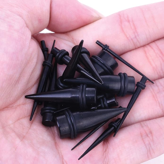 - VERIFIED SIZES: Tunnels, Tapers (O-Rings Included): 14G (1.6mm), 12G (2mm), 10G (2.4mm), 8G (3.2mm), 6G (4mm), 4G (5mm), 2G (6mm), 0G (8mm), 00G (10mm). COLOR: Black. SINGLE FLARE: Plug Has Lip on One Side and Perfectly Smooth on Other, O-Rings Will Securely Hold Jewelry in Your Ear