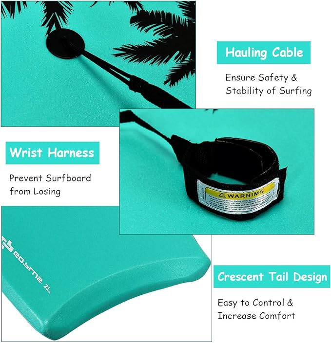 • 【Strong Buoyancy & Light Weight】Strong buoyancy and sturdy construction give our body board a strong load-bearing capacity. It is not easily deformed and faded and can be used for a long time. The light weight makes it easy to carry, so you can take it wherever you go.