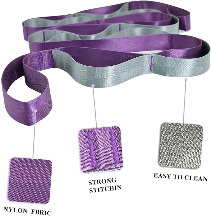 - PORTABLE AND EASY TO USE: Yoga straps for stretching with 12 loops. 8 foot long and 1.57 inches wide. Stretching straps are easy to work, so whether you're a beginner or an experienced fitness enthusiast, stretching strap with loops is a very good option for you.