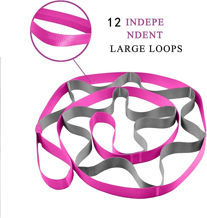 - PORTABLE AND EASY TO USE: Yoga straps for stretching with 12 loops. 8 foot long and 1.57 inches wide. Stretching straps are easy to work, so whether you're a beginner or an experienced fitness enthusiast, stretching strap with loops is a very good option for you.