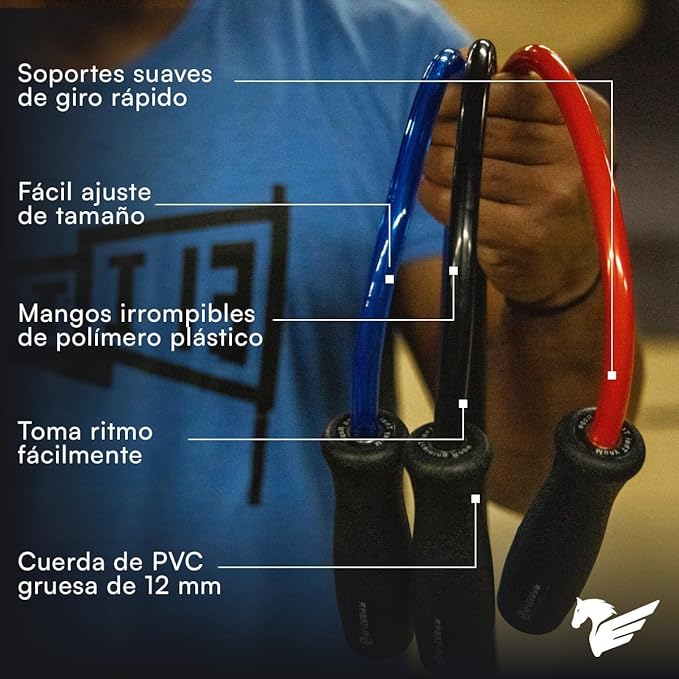 - Heavy Duty Workout Jump Ropes - This weighted rope was designed to last and take the abuse of the gym and endurance workouts. Upgraded 12mm PVC cord can be used on outdoor and rough surfaces. Industrial grade 4.7" long handles are made of an ultra durable unbreakable plastic.