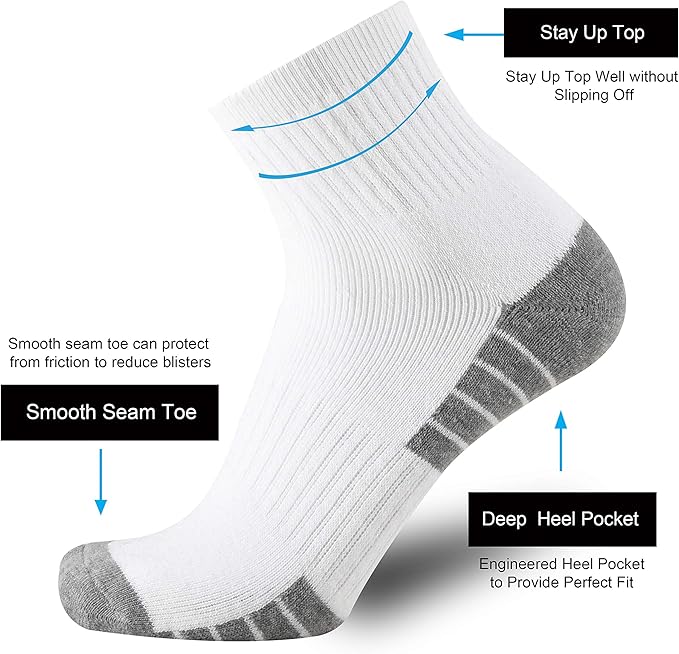 - Moisture Control:The advanced technical fibers wick away sweat and moisture.Moisture wicking properties to keep smell fresh and feet dry and breathable