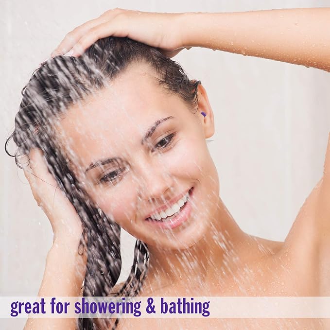 Mack's AquaBlock Swimming Earplugs, 3 Pair - Comfortable, Waterproof, Reusable Silicone Ear Plugs for Swimming, Snorkeling, Showering, Surfing and Bathing (Purple)