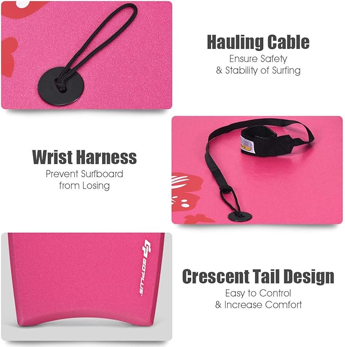 - 【Strong Buoyancy & Light Weight】Strong buoyancy and sturdy construction give our body board a strong load-bearing capacity. It is not easily deformed and faded and can be used for a long time. The light weight makes it easy to carry, so you can take it wherever you go.