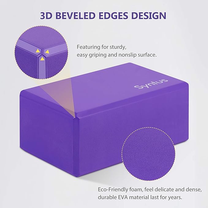 Syntus Yoga Block and Yoga Strap Set, 2 Soft Non-Slip Yoga Blocks 9×6×4 inches, 8FT Metal D-Ring Strap for Yoga, General Fitness, Pilates, Stretching and Toning