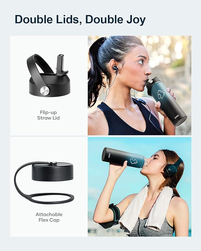 - 2 Lids to Max Its Usability: This stainless steel bottle comes with a straw lid and a flex cap to gear up your games and explorations. Both caps can seal airtight with 100% leak-proof, so you can drink without a spill on the road. *NOTE: ONLY the 22oz and 32oz T-shape bottles fit in any cup-holders*