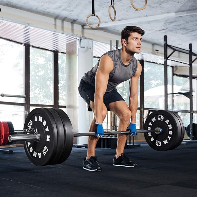 - VERSATILE - AMGYM Bumper Plates are available in 6 weights: 10LB, 15LB, 25LB, 35LB, 45LB, 55LB. Good for strength training, weightlifting, etc.