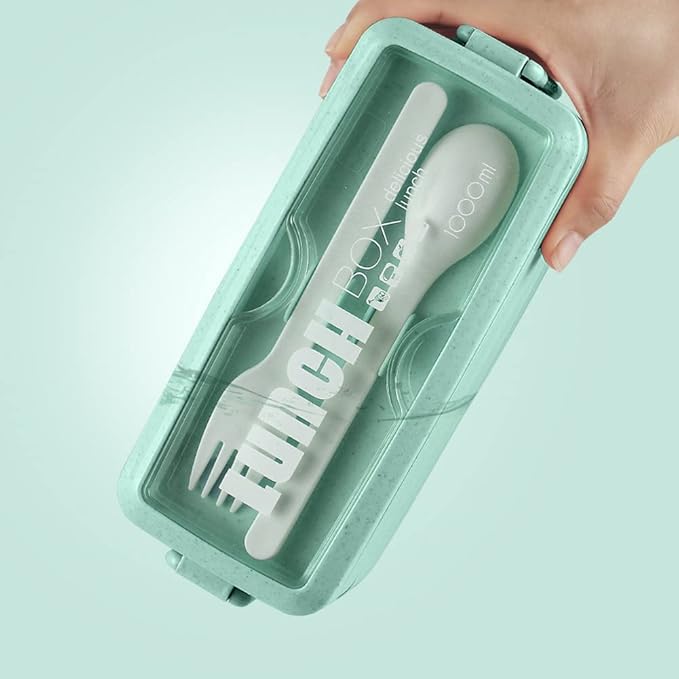 - 【WHAT YOU GET】 Smooth and microwave safe lunch box, a fork and a spoon.