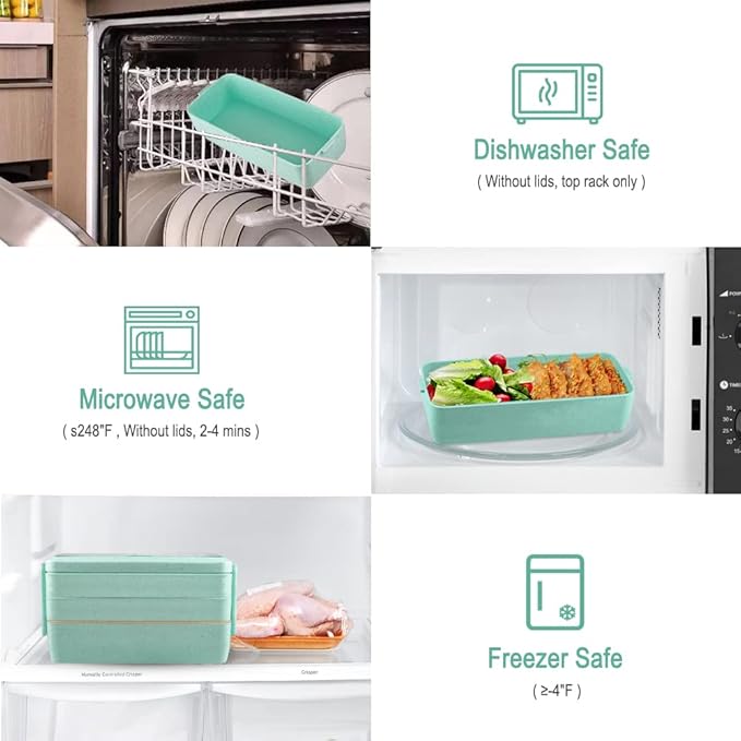 - 【Microwaveable and Dishwasher Use】 Split your food between 3 divided containers. Keep your everyday meal prep under control. Removable compartment tray reheats food safely in the microwave and cleans up easily in the dishwasher(Expect the lid). That’s why it is the best work lunch box.