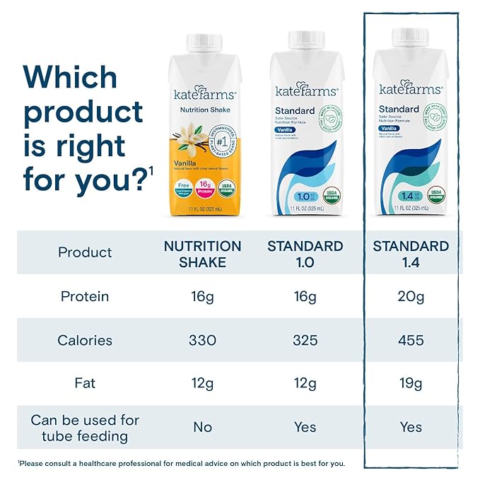 KATE FARMS Organic 1.4 High Calorie Nutrition Shake, Vanilla, 20g Protein, 27 Vitamins and Minerals, Meal Replacement, Protein Shake, 11 oz (12 Pack)