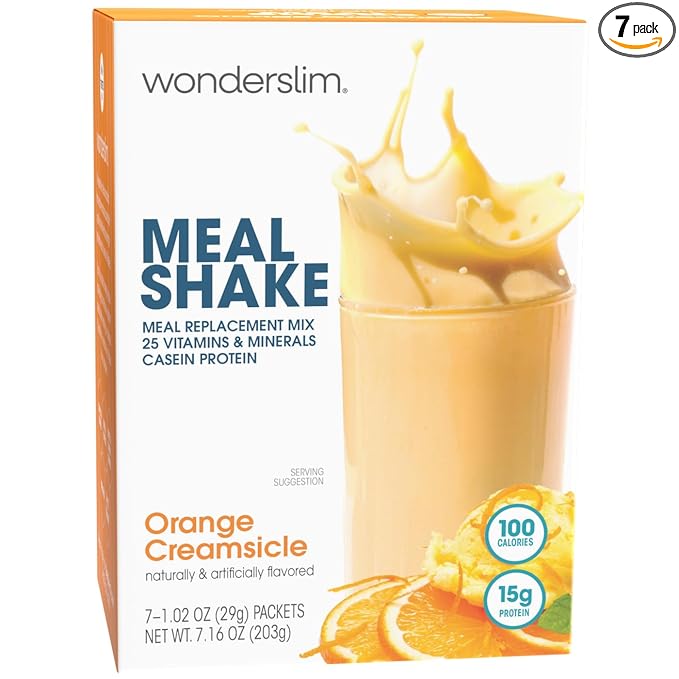 WonderSlim Meal Replacement Shake, Orange Creamsicle, 15g Protein, 25 Vitamins & Minerals, Gluten Free, Low Carb (7ct)