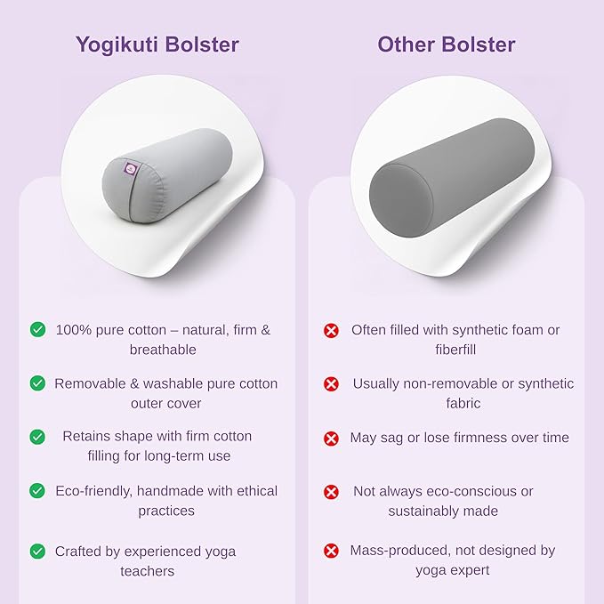 Yogikuti Iyengar Yoga Bolster for Restorative Yoga and Meditation – Lightweight Cotton Support Pillow with Handle for Easy Carry, Versatile for Pose Modification, Balance, Back Relief, and Relaxation