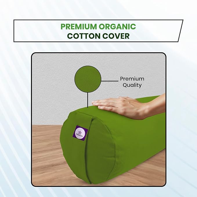 Yogikuti Iyengar Yoga Bolster for Restorative Yoga and Meditation – Lightweight Cotton Support Pillow with Handle for Easy Carry, Versatile for Pose Modification, Balance, Back Relief, and Relaxation