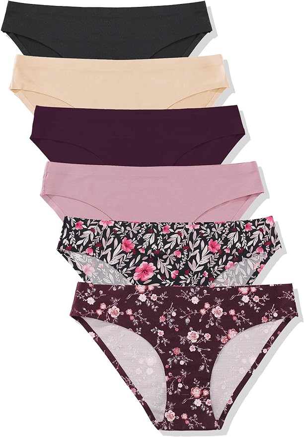 FINETOO 6 Pack Women’s Seamless Hipster Underwear No Show Panties Invisibles Briefs Soft Stretch Bikini Underwears XS-XL