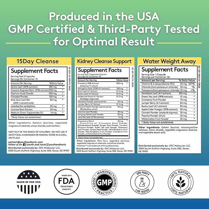 Youth & Tonic Complete Multi-Organ Detox Support – 15 Day Colon Cleanser & Gut Detox, Kidney Cleanse, Water Balance & Liver Health, 90 Pills for Women and Men