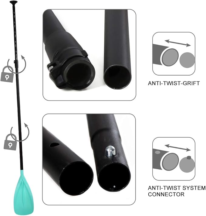 - ADJUSTABLE &LIGHTWEIGHT: It weighs only 1.88 lbs (0.87kg) and can be height adjusted from 65 to 87 inches (1,52 to 2,2 m), which makes it suitable to a very broad range of paddlers from 4' to 6'4" tall (1.22 to 1.92 m). An easy click & go system enables you to share your paddle with friends and family.