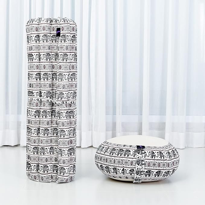 Leewadee Meditation Cushion Set – 1 Round Zafu Meditation Pillow and 1 Square Roll-Up Zabuton Meditation Mat, Pillows Bundle Filled with Kapok