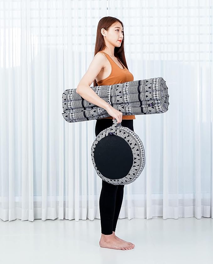 - Field of application: Both yoga cushions are the perfect companion for meditation practice and yoga exercises. The carrying strap and the roll-up function facilitate storage and transportation