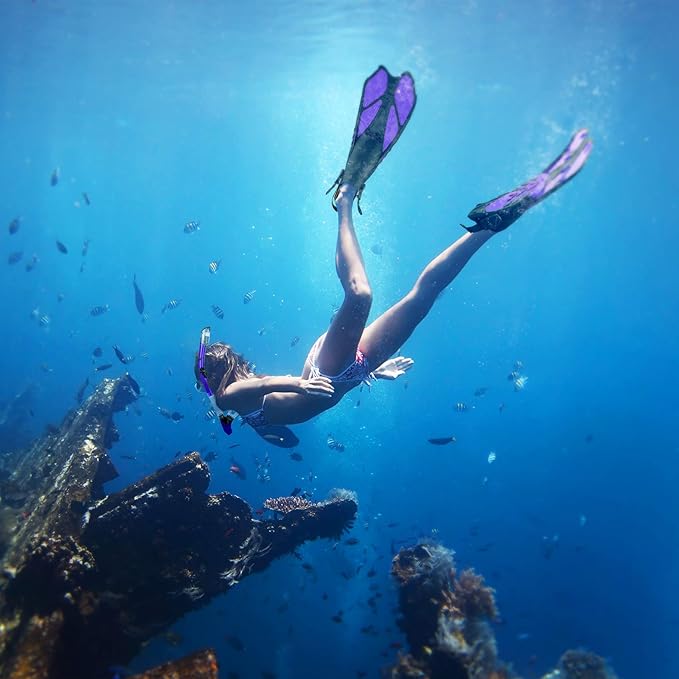 - Full mask fin snorkel set: zeeporte long snorkel set with adjustable fins, two window tempered glass lens mask, dry top silicone snorkel, travel gear bag, it's the ultimate travel companion and is suitable for snorkeling, swimming, body surfing, boogie boards and much more.