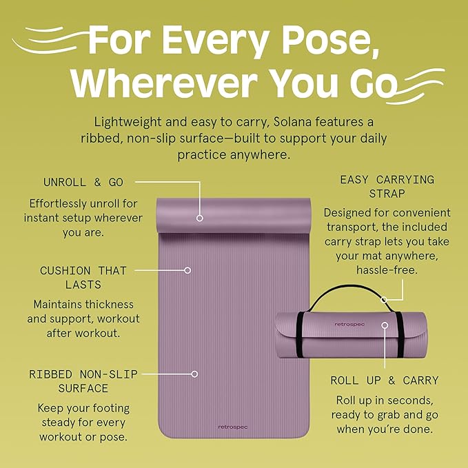 - Non-slip surface: Solana's non-slip material keeps you steady and balanced while staying securely on the floor, preventing injury and allowing you to focus on your practice or workout.