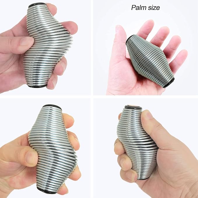 - HIGH QUALITY: This stress relief ball is made of high-quality spring steel, the chrome-plated finish treatment makes the product feel good and will not corrode the product due to sweat. Plastic covers at each end of the spring ball protect fingers from injury.