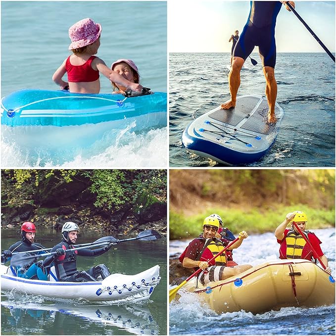 - 【Wide Applications】-- Suitable for PVC inflatable boat, Raft, Dinghy, Kayak, Canoe, Surfboard, Stand Up Paddle Board, etc.; Used for rescue rope, bailer, cargo, thigh straps.