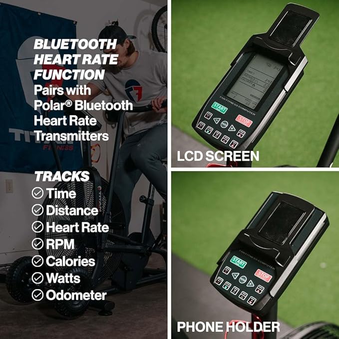 Titan Fitness Fan Bike, Indoor/Outdoor Cycling Exercise Bike with LCD Screen, Stationary Bike for Home Gym, Exercise and Cardio Workout Equipment, Black, 111 LB