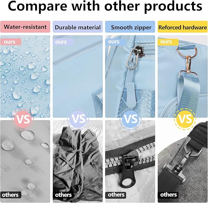 • DRY WET SEPERATED DESIGN & SHOE COMPARTMENT: The high density waterproof pocket can help you to divide wet clothes, towels, shampoo or cold drinks. Built-in shoe compartment keeps your shoe storage private and fresh. Additional storage pockets to organize your items and necessities.