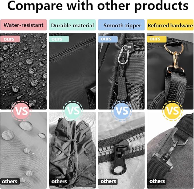 • DRY WET SEPERATED DESIGN & SHOE COMPARTMENT: The high density waterproof pocket can help you to divide wet clothes, towels, shampoo or cold drinks. Built-in shoe compartment keeps your shoe storage private and fresh. Additional storage pockets to organize your items and necessities.