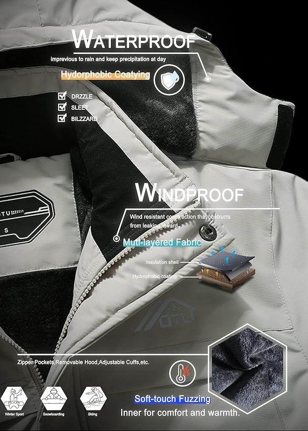 OTU Men's Waterproof Ski Jacket Snowboarding Windbreaker Warm Winter Hooded Mountain Snow Coat