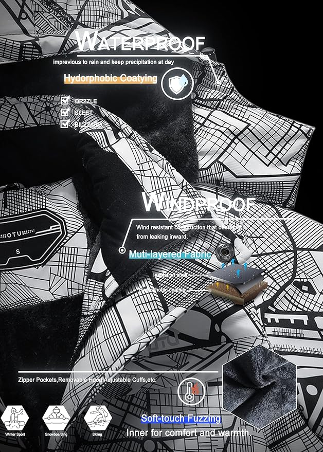 OTU Men's Waterproof Ski Jacket Snowboarding Windbreaker Warm Winter Hooded Mountain Snow Coat