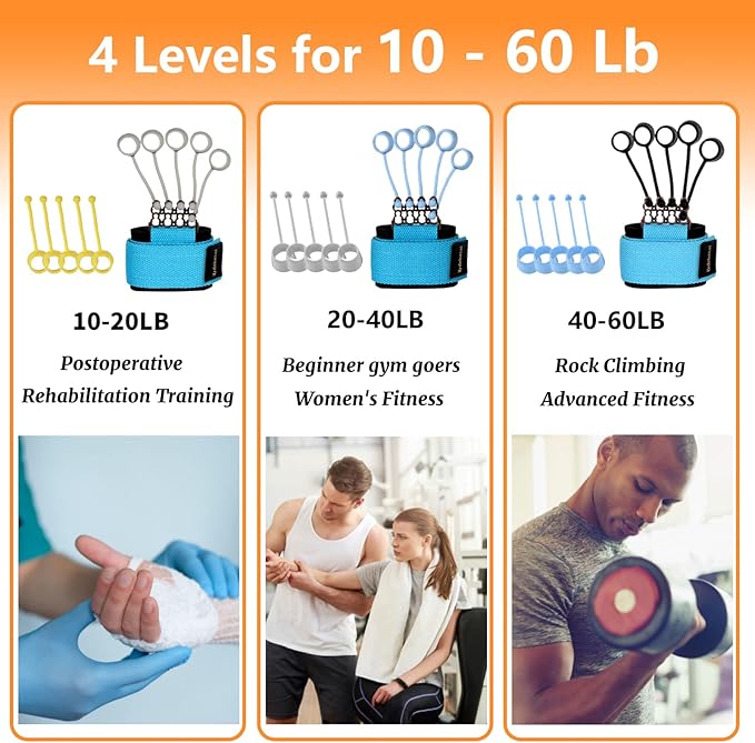 - Hand Extension Exerciser : Our finger grip strengthener is designed to target correct muscles to improve the power, flexibility and elasticity of the wrists, fingers and forearms. suitable for athletes and musicians who want to achieve the best results, or rehabilitation for people with hand injuries, office workers, and others who are prone to hand fatigue.
