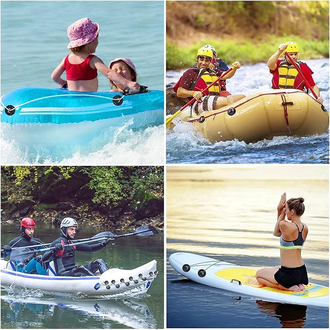 - 【Wide Applications】-- Suitable for PVC inflatable boat, Raft, Dinghy, Kayak, Canoe, Surfboard, Stand Up Paddle Board, etc.; Used for rescue rope, bailer, cargo, thigh straps.