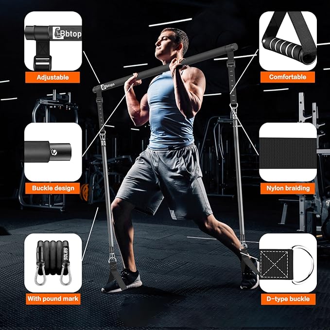 Pilates Bar Kit with Resistance Bands,Pilates Bar with Stackable Bands Workout Equipment for Legs,Hip,Waist and Arm,Exercise Fitness Equipment for Women & Men Home Gym Yoga Pilates