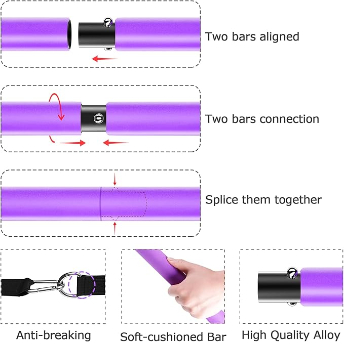 - 【All in 1-Full Body Workout】-Pilates bar with three button connect , two seconds to complete the connection and disassembly of the stick, very easy to operate. You can at home workout equipment,office exercise and exercise outdoors or take it travel, you can shape and maintain a perfect figure. Gym essentials women.