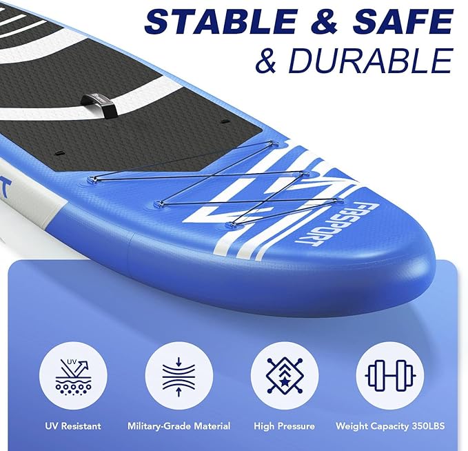 - VERSATILE PORTABLE STAND UP PADDLE BOARD - Quickly inflates or deflates for easy storage - packing down to the carrying bag.FBSPORT pandle board can be used in different water including sea,lakes, rivers or small wavy ocean. And the inflatable sup boards is great for fishing, surfing, paddling, cruising, yoga, sightseeing in water.
