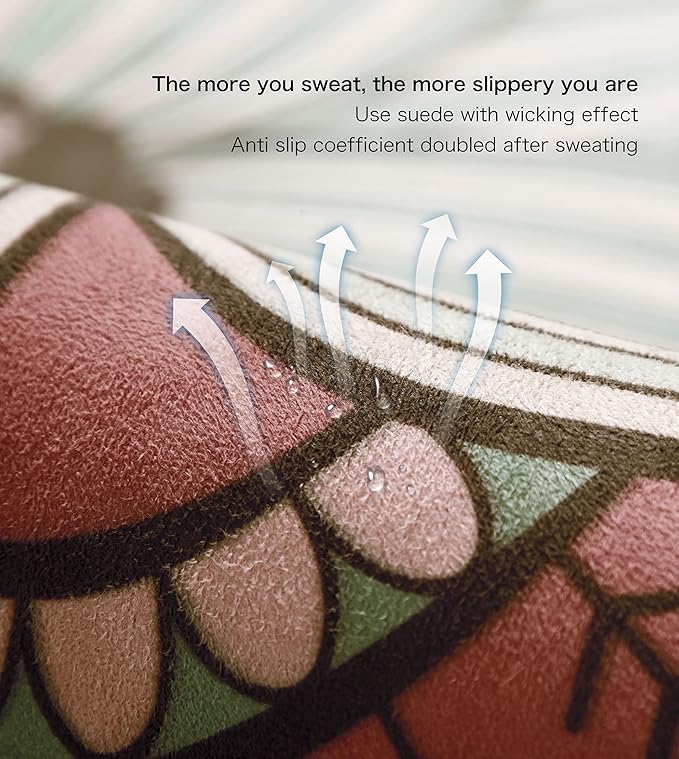 - Double Sides Non-slip: Faux suede surface can absorb sweat or water instantly. And since the bottom of the mat is made of natural rubber, it is slip resistant and easy to carry. Non slip on wood floor, tile floor, cement floor. The double-sided sticky non-slip texture of the mat provides excellent traction and superior grip, best suitable to practice many forms of yoga.