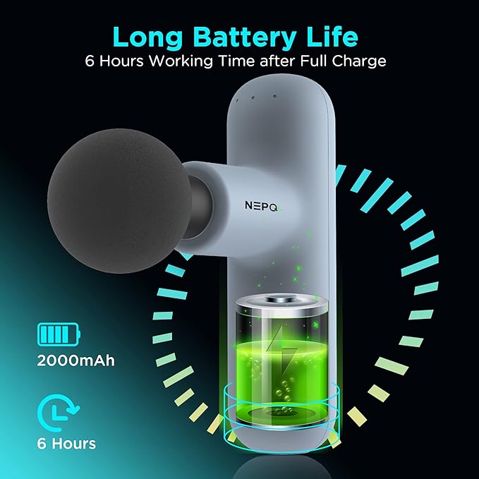 - SUPER QUIET Deep Tissue Massage Gun - With less than 40db working noise, NEPQ SK6 mini massage gun allows you to stay relaxed and undisturbed wherever you are, be it at home, on-the-go, or at work.