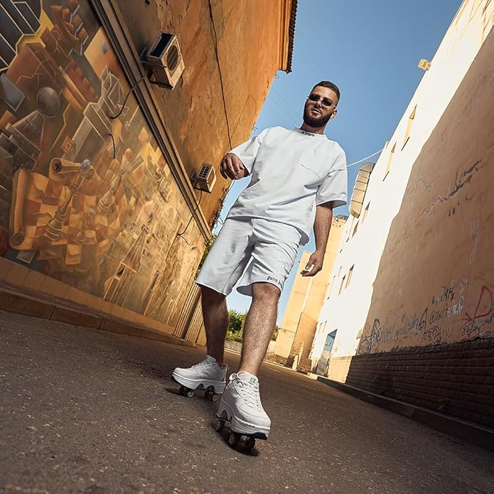 • Unleash the Fun with 2-in-1 Roller Skates & Sneakers!:Imagine effortlessly switching between walking and rolling in seconds! These innovative 2-in-1 shoes feature hidden retractable wheels that let you transition from city streets to park adventures with ease.