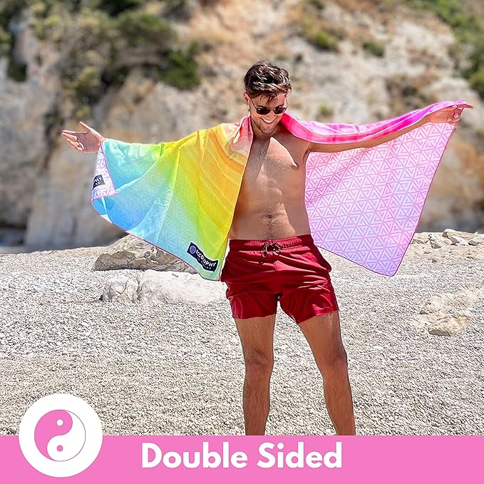 - Own the beach with our stunning 2 sided prints. Microfiber is a thin, ultra absorbent material. Super convenient to pack and carry. Maximize space in your luggage and closet with these compact and lightweight travel towels